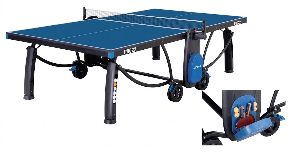 • ملحقات مدمجة: تحتوي على أماكن لتخزين المضارب والكرات على جانبي الطاولة.